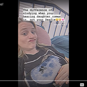 The hearing conflict that happens when your daughter wants to watch tv next to you while you study. But I sure love her!! 😆🤪❤️ #HearingProblems #CODA #ASL